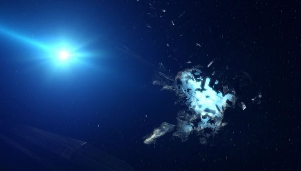 And in case we were wondering about the diameter is of the projectiles fired by the railguns on the attacking ships… it seems the answer is “just bigger than a human head.”