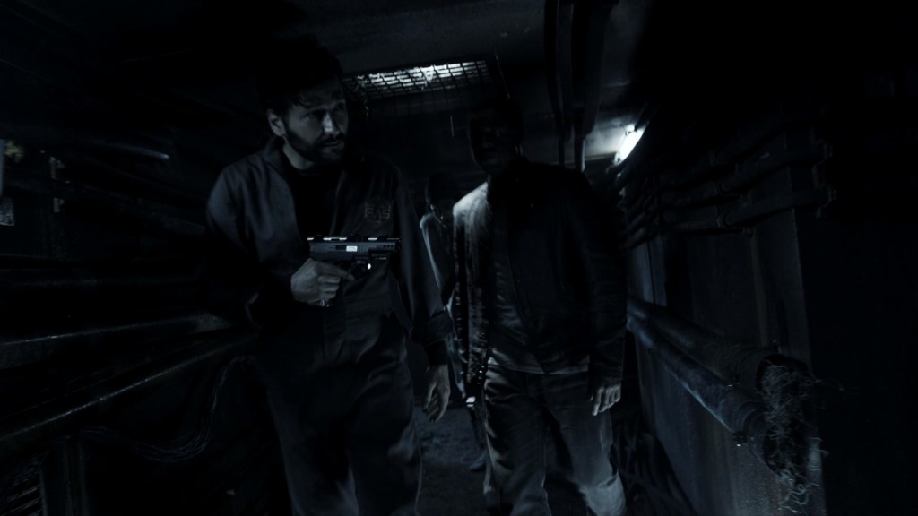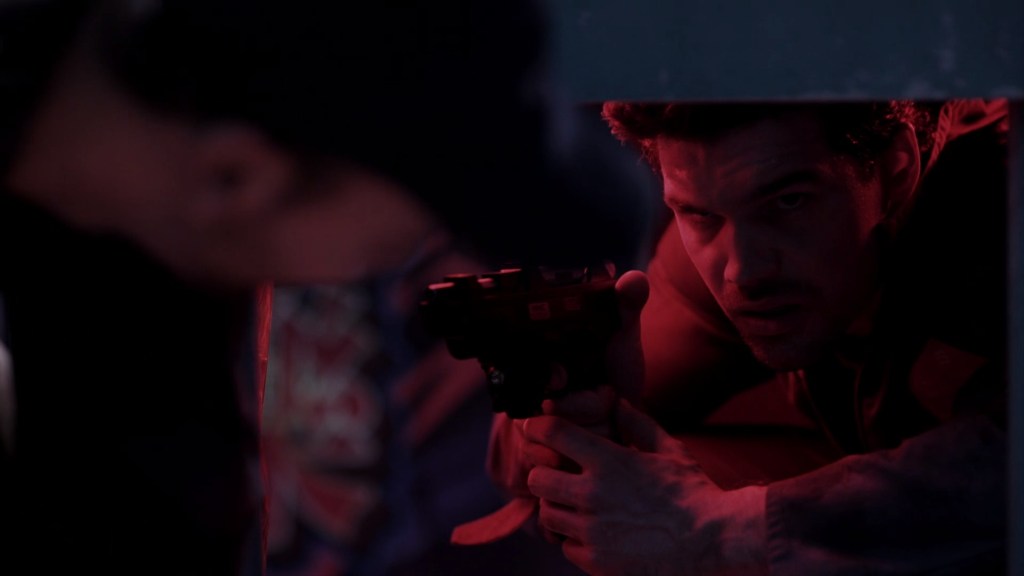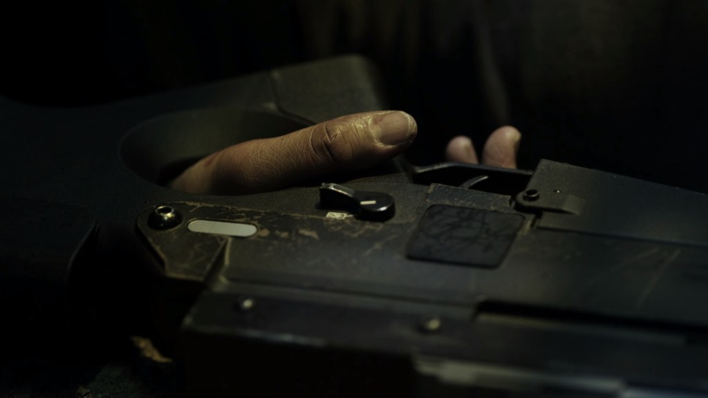 But as they do, they hear a sound…! Holden, clearly hoping to avoid further bloodshed, goes to check it out, and finds the sneaky spy they originally discovered on the Rocinante. He does the whole passive-aggressive threatening-shooting thing, but from a gun perspective, the only interesting aspect is that Holden finally runs out of ammo, as he had suggested they would do in Episode 8.