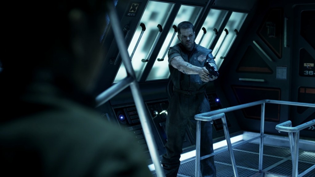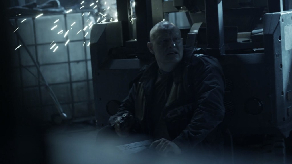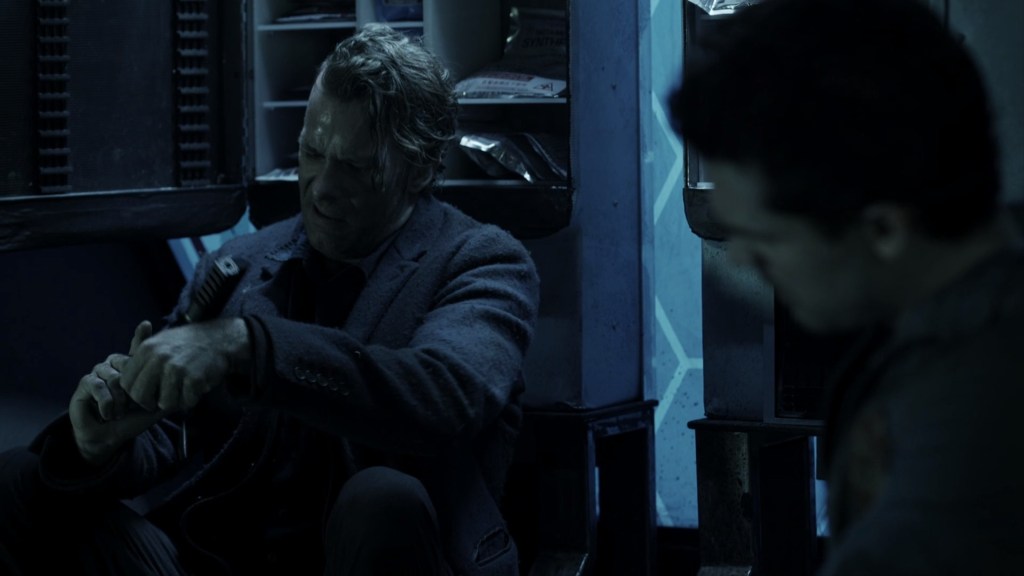 A key theme of The Expanse is that it is civilization that makes us civilized. Once civilization collapses, our civilized behaviour does as well. Holden is clearly getting exposed to this once more as Miller assassinates two additional CPM-thugs. Holden’s expression kinda says it all…