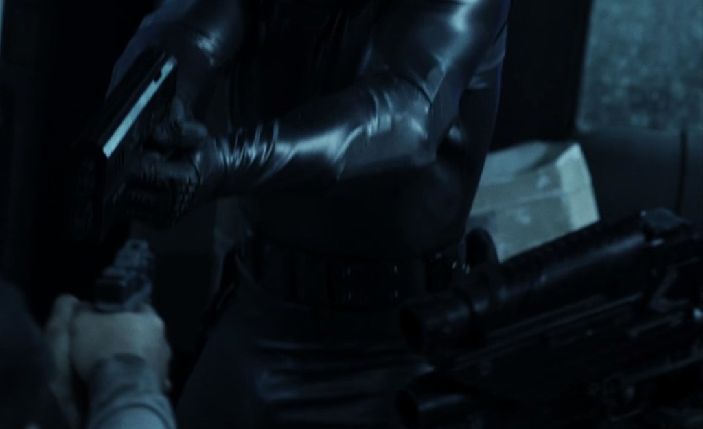So Miller does his thing – echoing his favorite agitators on Ceres, he drops the match that lights the magic fuze, and we get some serious gun action. The next few minutes are just a blur of movement, so we don’t get that many good stills. For instance we never get a clearly look of how the abominable guns are used in a firefight like this. However, we finally get a close-up of what the Protogen rubber suit baddies have been carrying in their side holsters.