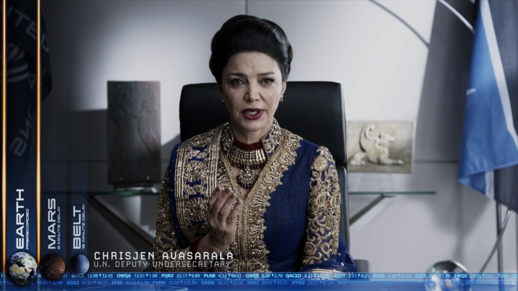 … we are back on Earth, where we see Avasarala admire her propaganda handiwork…