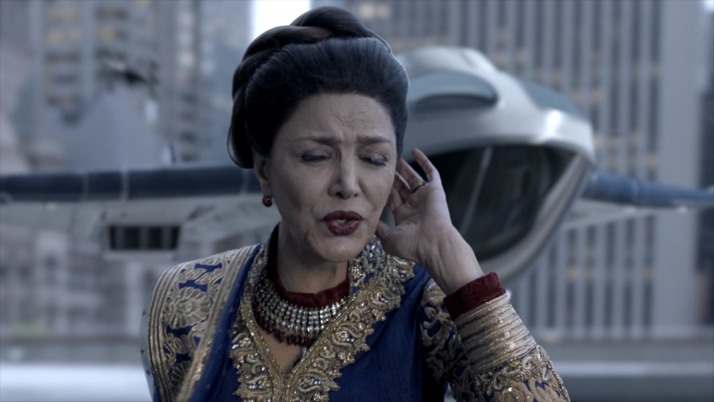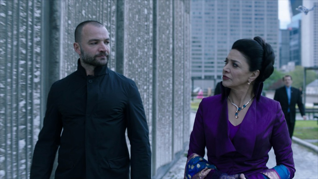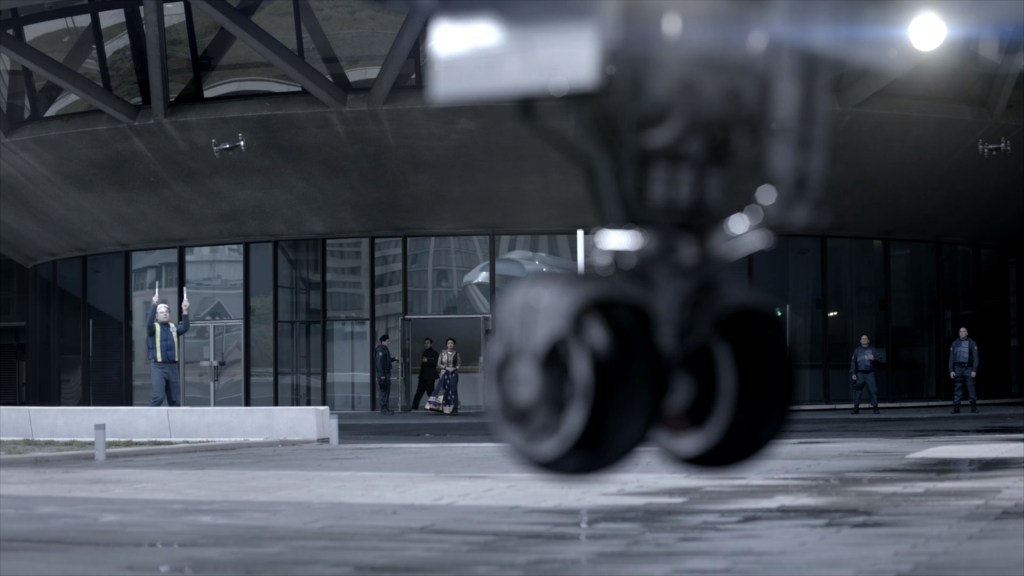 …before going outside to get on a very odd-looking VTOL-aircraft. As Avasarala exits, we see one of the many drones that seem to be everywhere on Earth.