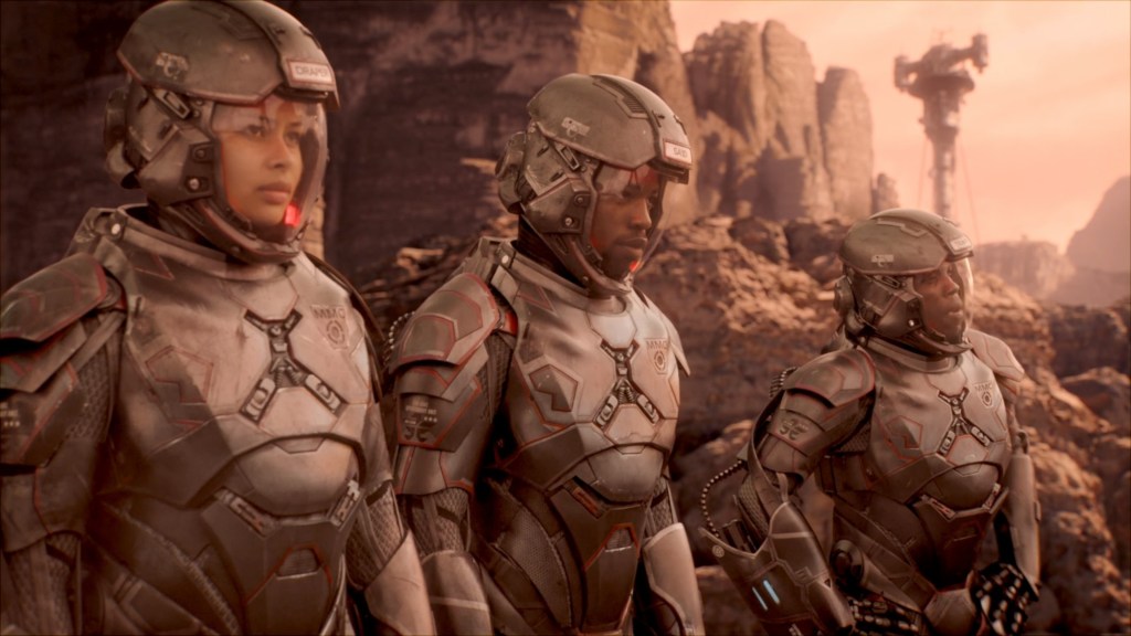Afterwards, everyone draws a sigh of relief – everyone except Bobby. Her discussion with the Lieutenant is telling, and probably prescient – it is clearly meant to build her up as a “good Martian”, a true believer in the dream of Mars, putting the subsequent events of the season into contrast. She is gung-ho, and like her fellow Marines cannot wait to have it out with Earth. As she says, maybe they cannot have the dream of Mars until after they have had their war. Pretty dark stuff…!