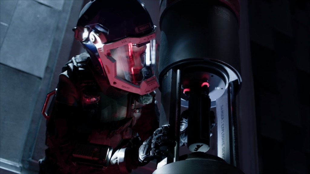 In what we learn is a training exercise, she commands the members of her four person fire team (which – awesomely – consists of two men and two women) through a scenario where they have to eliminate a number of concealed unmanned sentry guns. After one of her team members helpfully points out that “we’re pinned down” Bobby decides to lead from the front, running out ahead of her team to draw the fire of the sentry guns and allow her team to identify their locations. While she does, two of her team provide covering fire while the last member acts as spotter.
