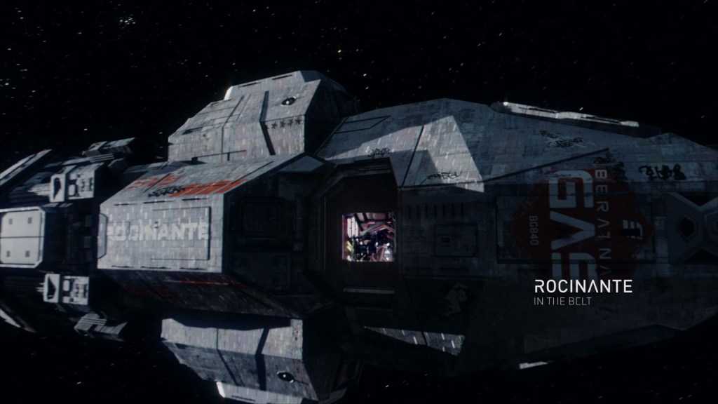 Next, following the opening credits, we rejoin our heroes on the Roci, and after a bit of Holden PTSD in the MedBay, we get an awesome external shot of the Martian corvette/light frigate giving us a good impression of the relative size of the ship.